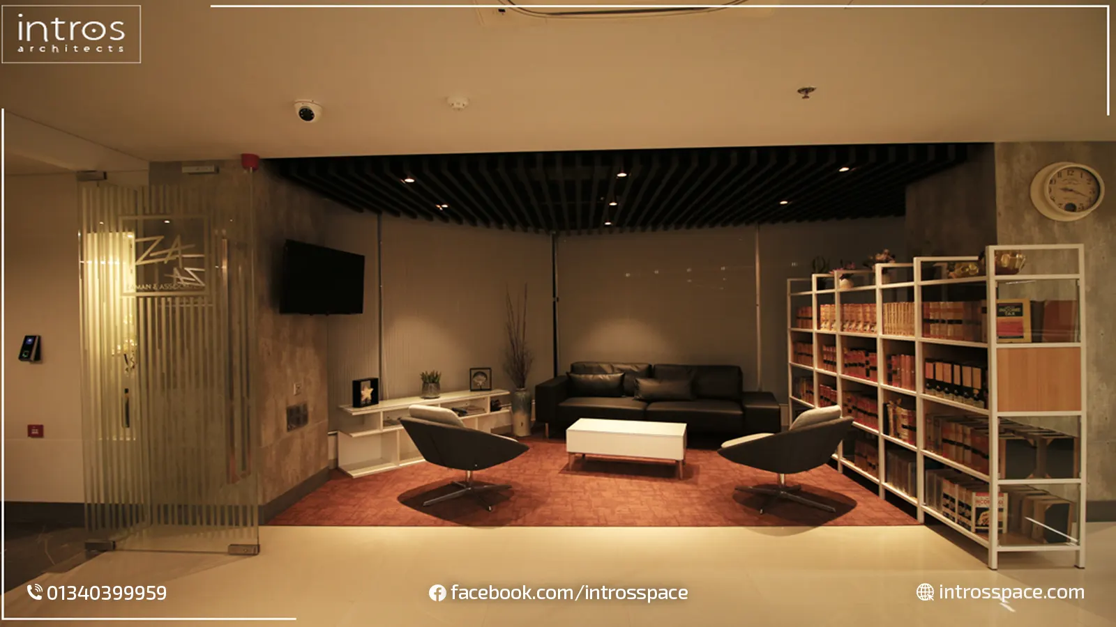 Z&A Office is a stylish commercial office interior crafted byIntros Space, proudly counted among the Top 10 Interior Design Companies in Dhaka. The workspace combines open‑plan efficiency with elegant visitor areas, using premium finishes, ergonomic furniture, and smart lighting for a productive yet welcoming vibe.